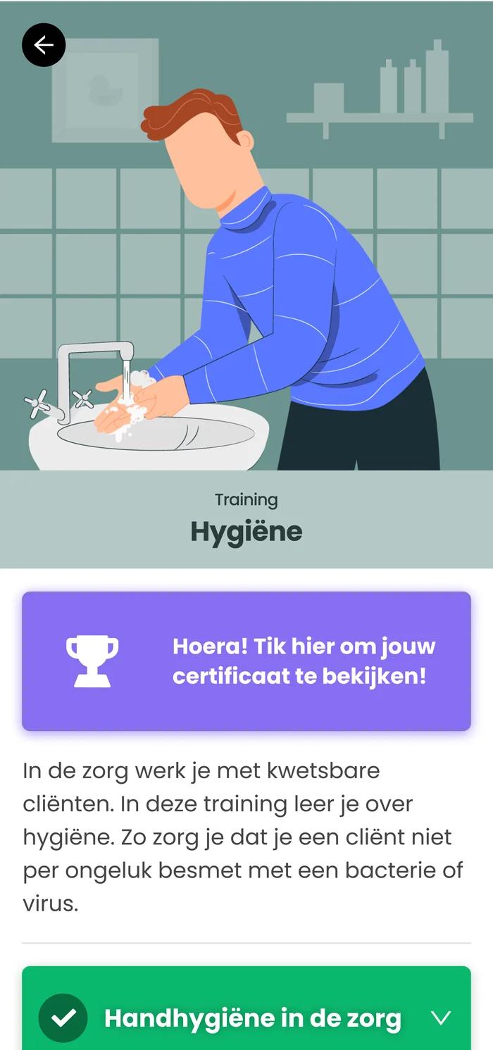Na het volgen van de training Hygiëne zijn medewerkers Huishoudelijke Hulp en Leefondersteuners in staat om de juiste hygiënemaatregelen te nemen op de juiste momenten. Ze weten hoe ze hun handen correct moeten desinfecteren en wassen, en hoe ze hygiënisch om kunnen gaan met hun smartphone en tablet. Bovendien hebben ze kennis over persoonlijke hygiëne en het belang hiervan in de zorg. Dit draagt bij aan een veilige en gezonde werkomgeving voor zowel de medewerkers als de cliënten.